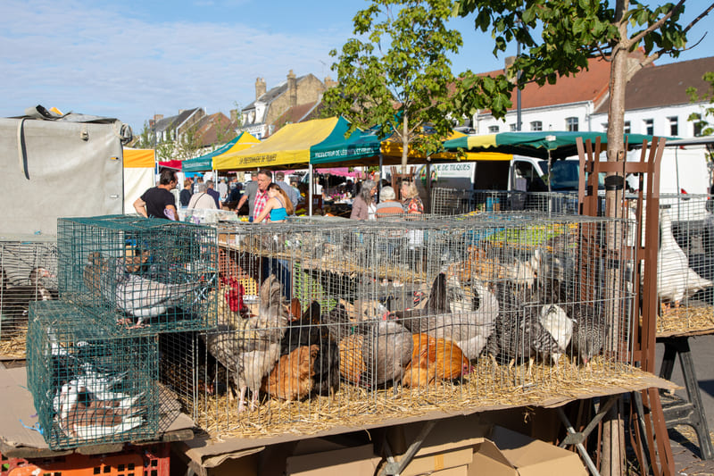 The Audruicq market is an unmissable local institution. Friendly and authentic, it brings together on average a hundred vendors, 95% of whom are regulars, which contributes to a real cohesion between merchants and visitors. The Audruicq market is a true living picture: the sounds of stalls being set up and the discussions of regulars are answered by the cackling of hens and the chirping of chicks on the animal market side, which is an attraction in its own right! Much more than a place to buy, it is a weekly meeting with the soul of a terroir, a tradition that adapts to the times, and a local pride shared by all. Proof of this is the wide mobilization of the municipality, the Intercommunal Tourist Office (formerly CPETI), merchants, and residents during TF1’s famous “Most Beautiful Market in France” competition.